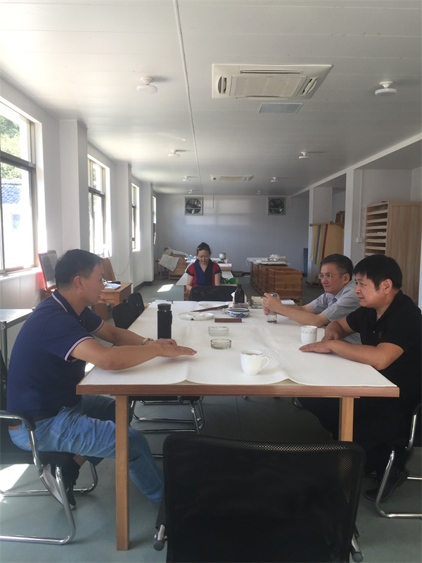 中科大湯書(shū)昆院長(zhǎng)、徽硯大師朱岱老師以及竹紙工藝大師來(lái)我公司參觀學(xué)習(xí),探討紙制作技藝、進(jìn)行紙文化交流。
